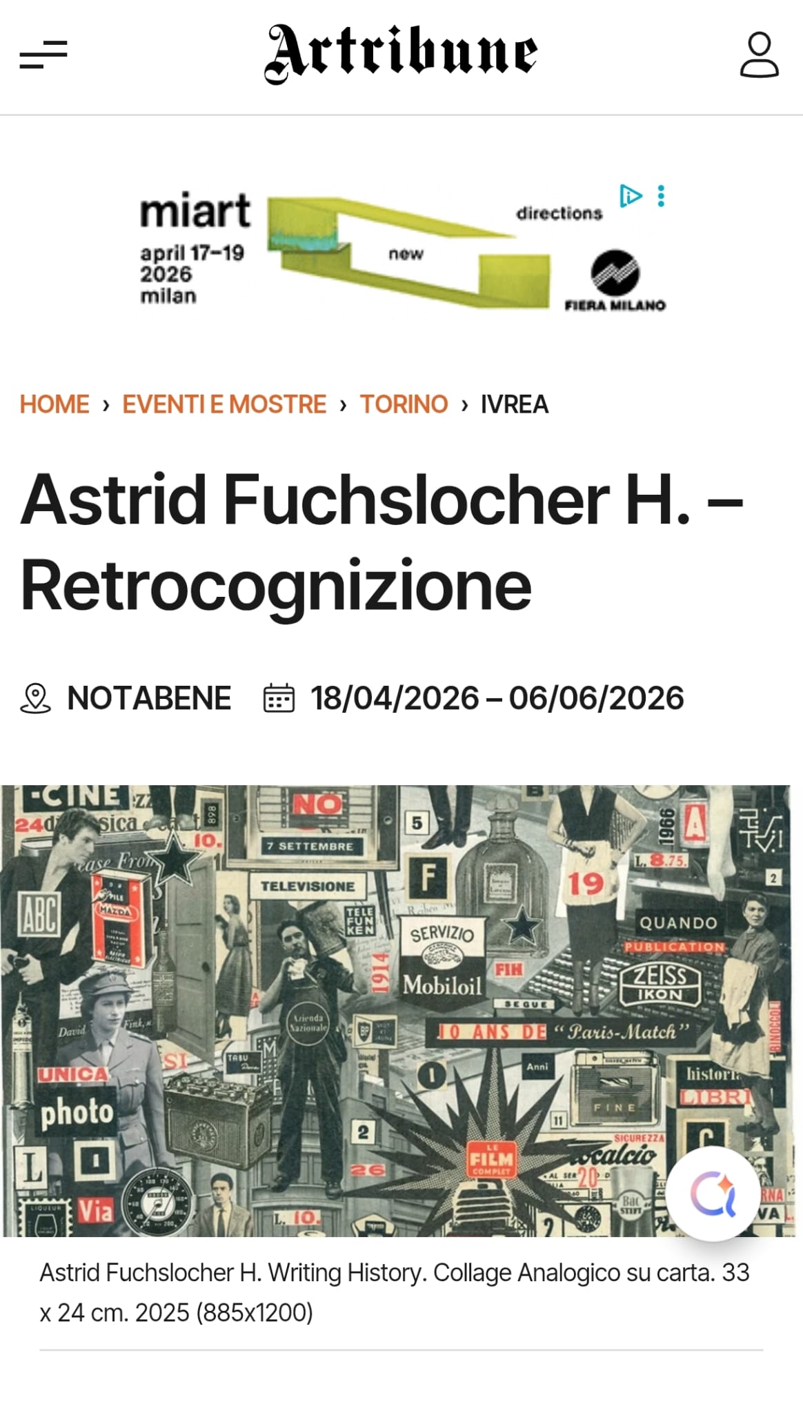 ARTEMIDA ART WEEK PRESS | MILANO TODAY (IT)